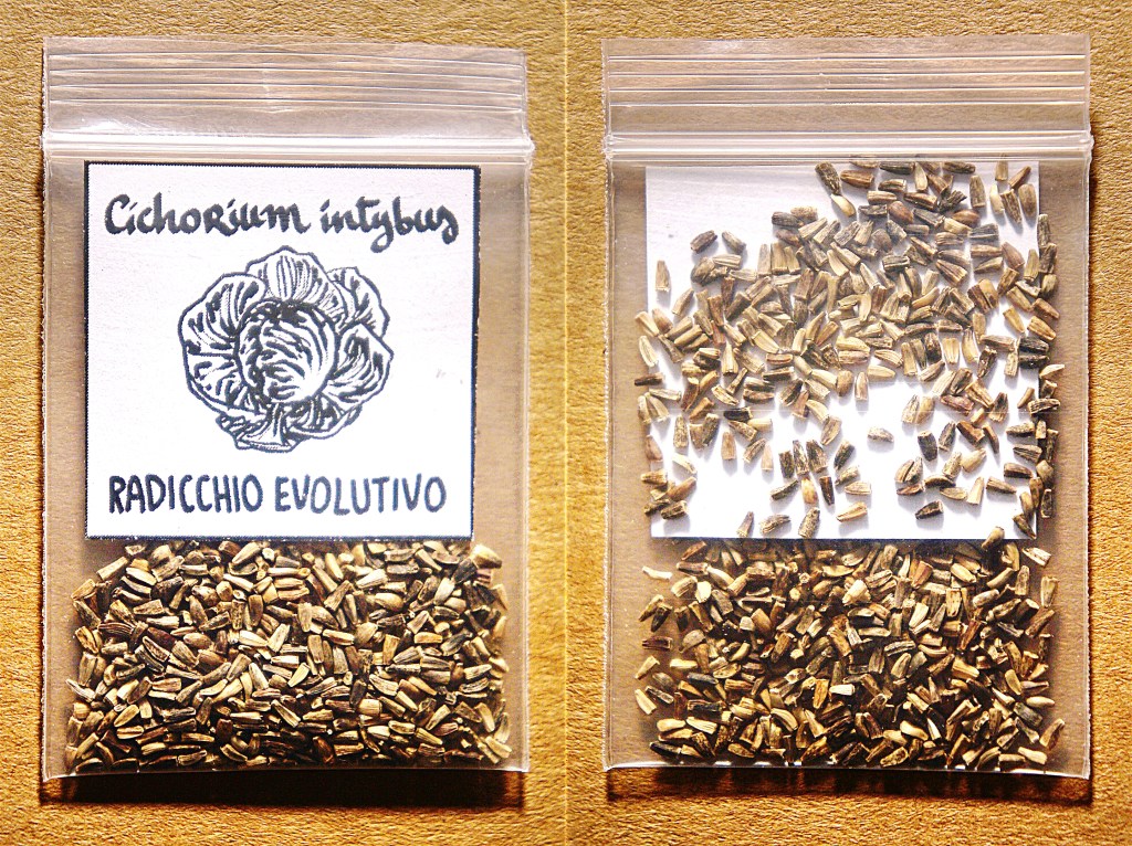 Il miscuglio evolutivo di Radicchi è stato avviato nel 2015 grazie al contributo di amici custodi, aziende sementiere specializzate, e associazioni di seedsavers italici ed europei.